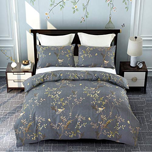 Topmail Single Parure da letto 2 pezzi con copripiumino 135 x 200 cm + 1 federa 50 x 75 cm, 100% poliestere vintage floreale grigio