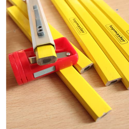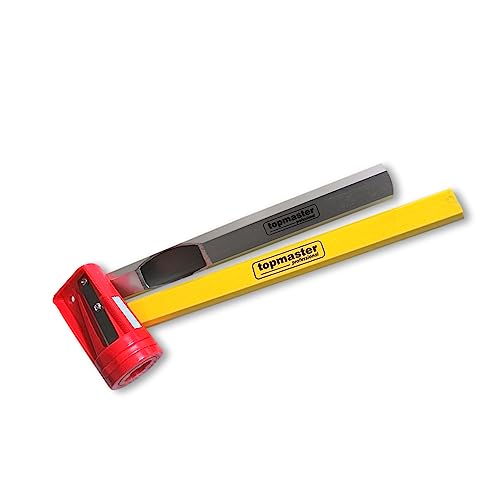 Topmaster Professional - Matite da carpentiere, da cantiere, da falegname, set da 7 pezzi, con temperamatite e portapenne