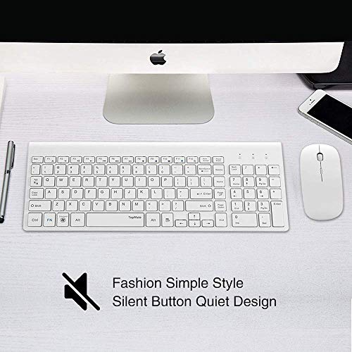 TopMate km9000 Set Tastiera e Mouse Senza Fili per PC e Computer Portatile (AZERTY, Bianco)