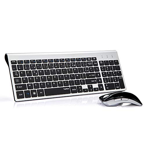 TopMate km9001 Set Tastiera e Mouse Senza Fili per PC e Computer Portatile (AZERTY) Noir Argenté