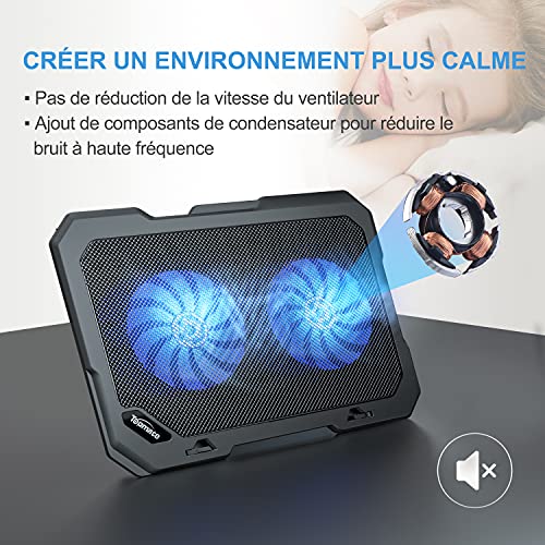 【Ventole silenziose】 La ventola per laptop è dotata di due ventole silenziose da 4,93 pollici che non ti disturbano durante la dissipazione del calore.