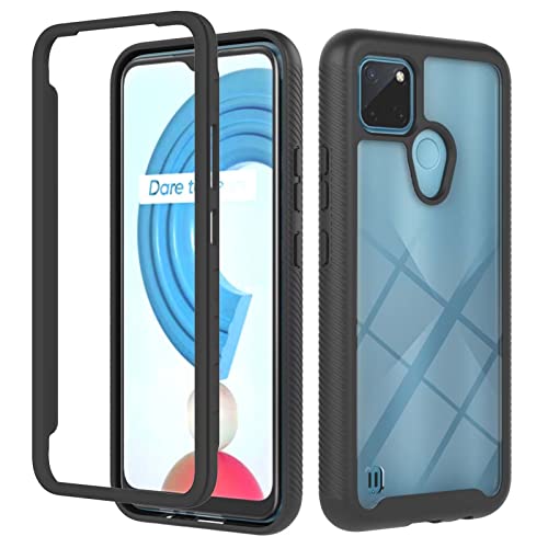Topme Cover per Realme C21Y / Realme C25Y (6.5" Inches) Custodia Case, Custodia per Cellulare Trasparente Due in Uno PC+TPU.Nero