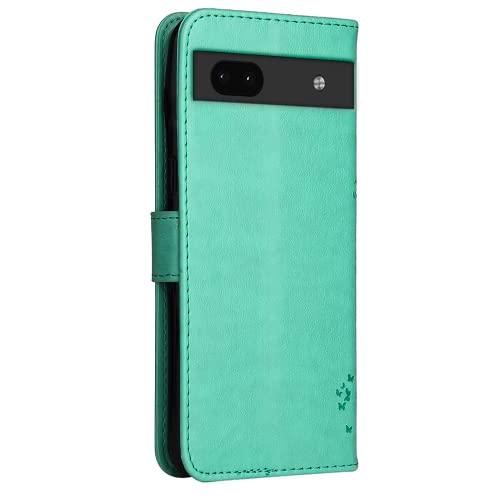 Topme Custodia in Pelle per Google Pixel 6A (6.1" Inches), [ Cover per Telefono in Stile Gatto e Albero] - Verde