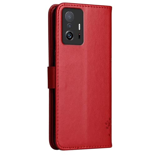 Topme Custodia in Pelle per Xiaomi MI 11T / Xiaomi MI 11T Pro (6.67" Inches), [ Cover per Telefono in Stile Gatto e Albero] - Rosso