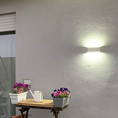 Topmo-plus 12w lampada da parete a LED Lampada Muro in Alluminio Applique da parete Esterna impermeabile IP65 18 cm (bianco freddo/bianco)