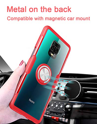 TOPOFU Coque Xiaomi Redmi Note 9S/9 Pro, Ultra Sottile TPU Silicone Trasparente Anti Graffi con 360° Anello Supporto Cover Cover per Xiaomi Redmi Note 9S/9 Pro (Rosso)