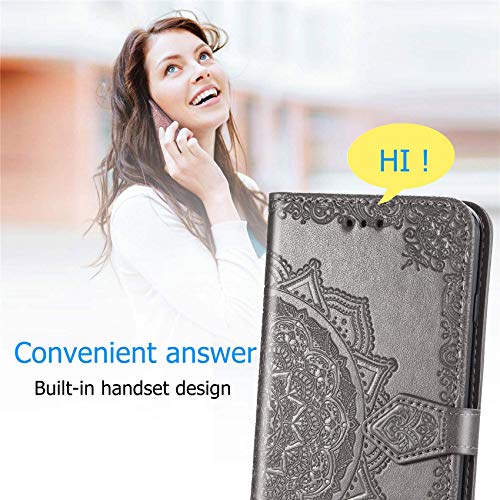 TOPOFU Cover per Samsung Galaxy S21 Ultra Custodia, PUTPU Pelle Premium Magnetica Flip Custodia, Design retrò Motivo Floreale, Antiurto Portafoglio PU Case Cover, Grigio
