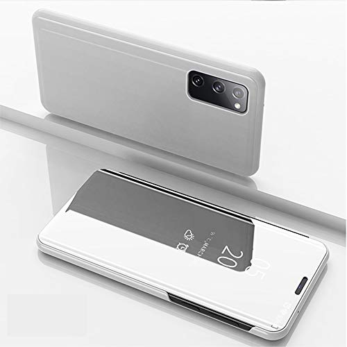 TOPOFU Custodia Samsung Galaxy S20 Fe 5G/4G Cover,Luxury Trasparente Flip Placcatura Specchio Cover con Supporto Funzione Protettiva Custodia per Samsung Galaxy S20 Fe 5G/4G-Argento
