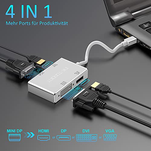 Topoint - Adattatore Mini DisplayPort, 4 in 1 Mini DP Full HD 4K x 2K a porta HDMI/DVI/DP/VGA Thunderbolt, adattatore convertitore video per Apple MacBook, MacBook Pro, iMac, MacBook Air