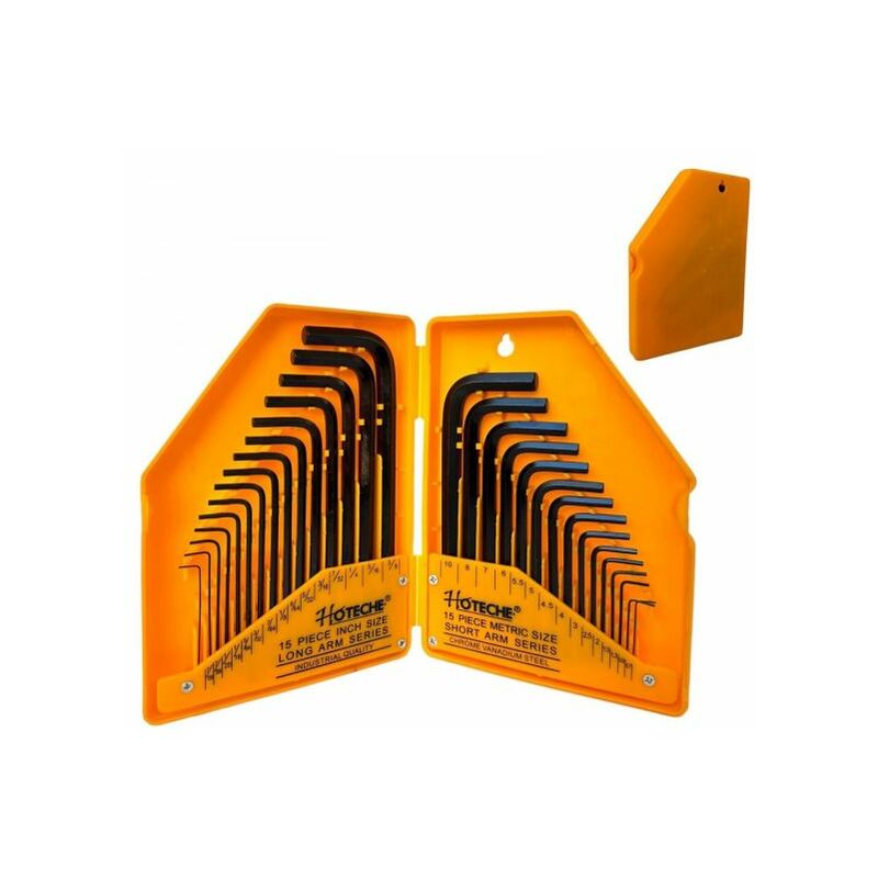 SET 30pcs CHAIVI ESAGONALI FORMA A L METRICHE E POLLICI Kit 30 Pezzi chiavi a brugola chiavi esagonali chiavi a L metriche e in pollici. Caratteristiche tecniche: 15 chiavi SAE a braccio lungo 3/8, 5/16, 1/4, 7/32, 3/16, 5/32, 9/64, 1/8, 7/64, 3/32, 5/64, 1/16, 1/20, 7/200, 7/250 15 chiavi metriche a braccio corto 10 mm, 8 mm, 7 mm, 6 mm, 5,5 mm, 5 mm, 4,5 mm, 4 mm, 3 mm, 2,5 mm, 2 mm, 1,5 mm, 1,3 mm, 0,9 mm, 0,7 mm La confezione contiene: 30 x Chiavi metriche e in pollici