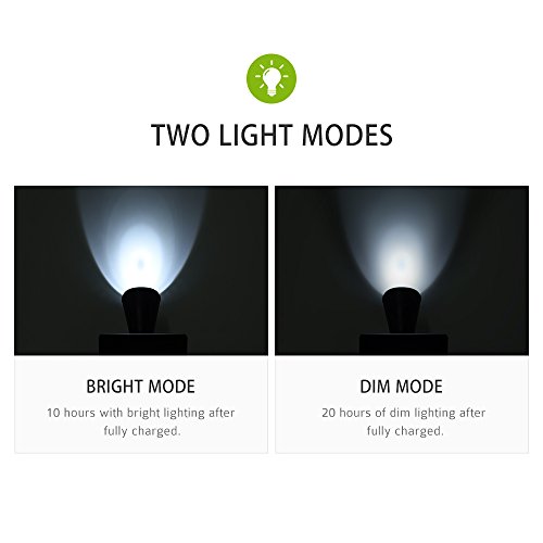 【Lunghi Orari di Illuminazione】. Modalità luminose e scure tra cui scegliere per il Suo uso. 10 ore con illuminazione intensa dopo una carica completa. 20 ore di scarsa illuminazione dopo una carica completa.