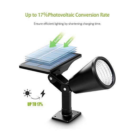 Topop Luce Solare Faretto Luci da Wireless Giardino, Impermeabile IP65 Luce Solare, Lampada Regolabile e Pannello Solare con Sicurezza di Notte per Cortili Giardini Prato [2 Pezzi]