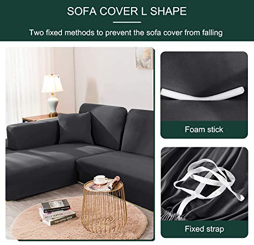 TOPOWN Copridivano con penisola Impermeabile, copridivano angolare 3 posti + 3 posti, con 2 Fodere per Cuscini, Grigio Scuro