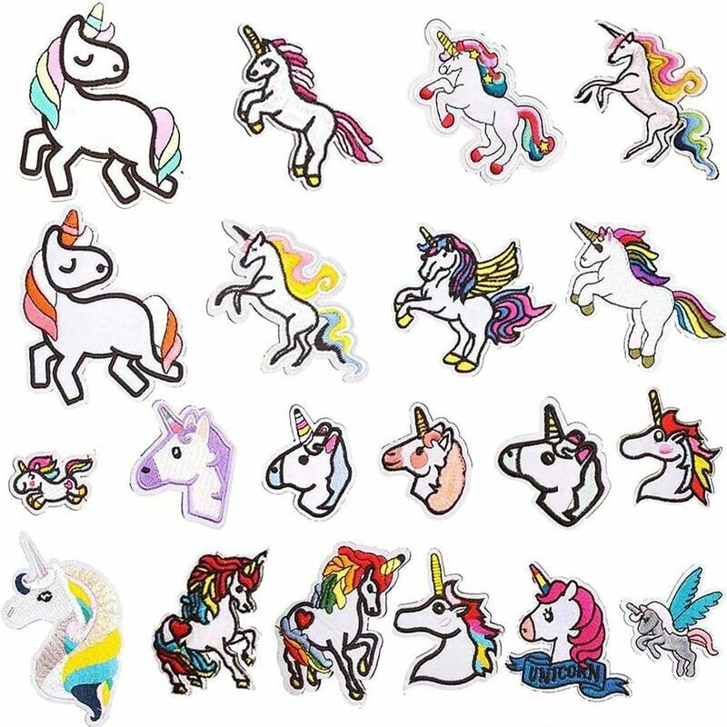Pacchetto incluso - : 20 diversi unicorni dei cartoni animati + ago e filo, bottoni, spille;