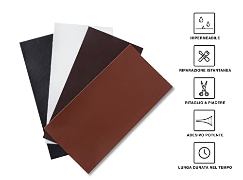 IPEA Toppa in Pelle Adesiva Nera [ 20 cm x 10 cm ] per Riparazioni e Strappi - Made in Italy - Patch di Ecopelle Autoadesiva per Divani, Vestiti, Giacche, Sedie, Casa, Accessori, Oggetti