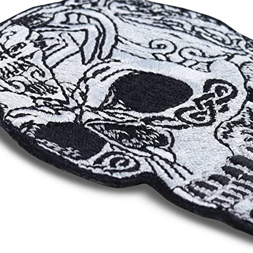 Toppa ricamata da applicare con ferro o cucitura: "Skull head" Biker annodare/ferro | Scheletro Skull Applicazione | Heavy Metal adesivo | Applicazione tessuti | 85x75mm