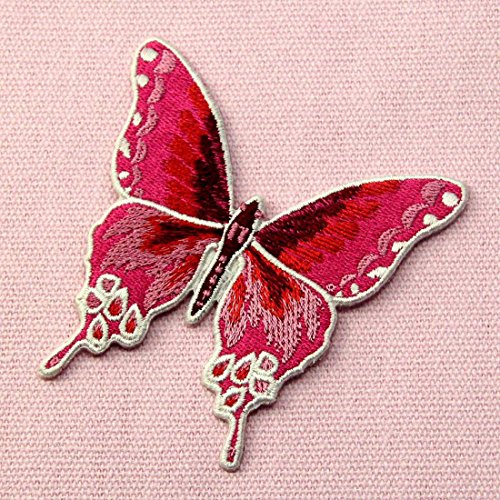 Toppa ricamata da applicare con ferro da stiro o cucitura, tema: Farfalla, Rosa