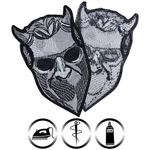 Toppa ricamata da applicare con ferro da stiro o cucitura: Patch Heavy Metal Maschera del Diavolo - Patch Heavy/Trash/Metal per Festival, Jeans, riparazioni - Applicazione per Outdoor - 90x50mm