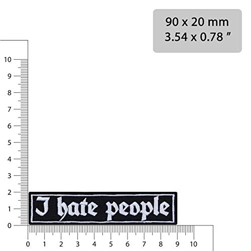 Toppa ricamata da applicare con ferro da stiro o cucitura:"I HATE PEOPLE" per cucire/stirare | Felpa con scritta, adesivo per jeans, applicazione per tutti i tessuti | 90x20mm