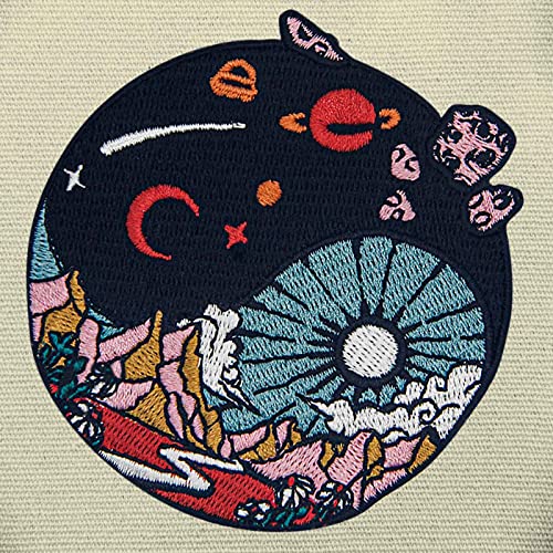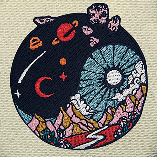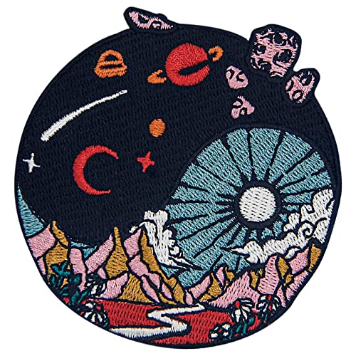 Toppa ricamata da applicare con ferro da stiro o cucitura, tema: spazio ying-yang
