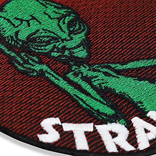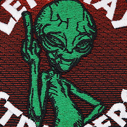 Toppa ricamata ferro o cucitura: "Rimani uno sconosciuto" Mano del medio UFO Alieno Alieno Patches Applique termoadesiva Alta qualità Adesivi Alieno Abbigliamento/Patch cucito 90x90mm