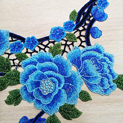 Toppa ricamata con rose floreali per abbigliamento, applique da cucito, toppa fai da te, accessori patchwork fatti a mano, 1 pezzo, blu