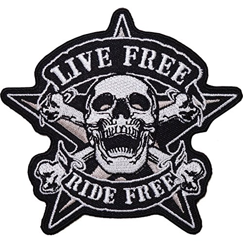 Toppa ricamata con la scritta “Live Free, Ride Free”, da applicare con il ferro da stiro o cucire direttamente sull'indumento, ideale per giacche in pelle, colore: nero.
