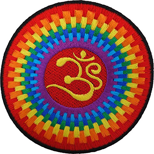 Toppa termoadesiva da cucire, ricamata Aum Om buddista, induismo buddista, arcobaleno