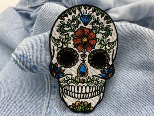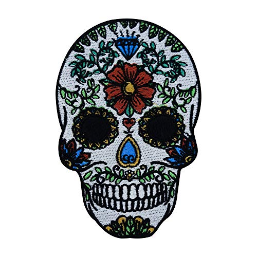 Toppa termoadesiva a forma di teschio bianco con diamante sulla fronte | Toppe termoadesive