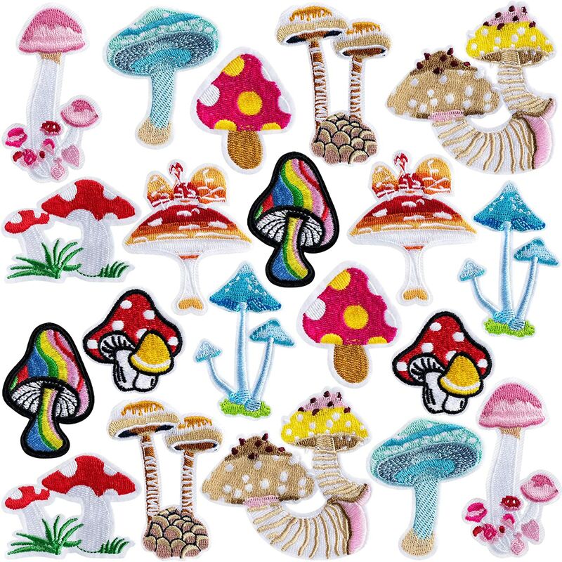 Toppa termoadesiva ricamata: Il ferro da stiro a fungo include 20 pezzi, 10 pezzi di toppe a fungo di diverse forme e dimensioni sfuse * 2 set. Una varietà di qualità può soddisfare la tua creatività fai-da-te e creare uno zaino per abbigliamento nuovo e innovativo Materiale morbido: Filo di seta di poliestere di alta qualità + tessuto non tessuto + fibra di poliestere, colla hot melt sul retro. Facile da attaccare e cucire e adatto a vestiti di qualsiasi materiale Ampiamente usato;