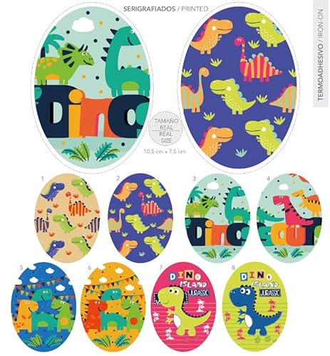 Toppe per ginocchiera per bambini serigrafate da stirare sui vestiti Applicazioni termoadesive per riparare e decorare pantaloni, giacche, maglioni, zaini, ginocchiere dinosauri. 2 ginocchiere
