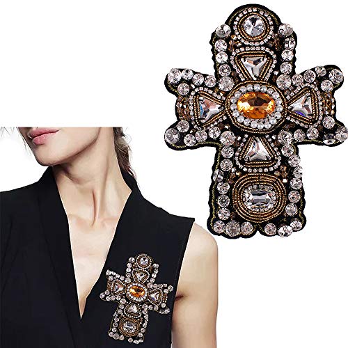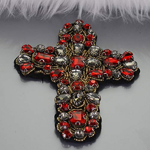 2 toppe con perline di cristallo e strass a forma di croce, da cucire su toppe per vestiti, borse, decorazioni fai da te