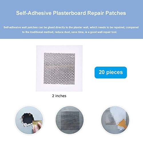 Kit di Toppe per Riparazione Cartongesso Toppa di Riparazione Parete di Alluminio Schermo Autoadesivo Patch da Parete per Riparazione Per Riparare Pareti e Soffitti Danneggiati 20 Pezzi 2 Pollic