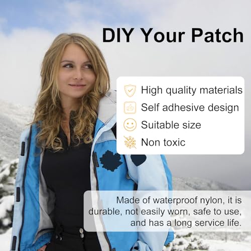 【Adesivo in tessuto impermeabile】 La toppa in tessuto del piumino è realizzata in materiale di nylon impermeabile, che decora e ripara efficacemente i tuoi vestiti, fornendo una riparazione semplice e bella senza lasciare evidenti segni di riparazione.