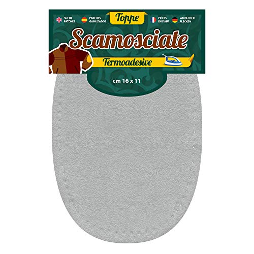 Toppe scamosciate Termoadesive, ideali per pantaloni, giacche,camicie. 16 x 11 cm (Grigio Chiaro)