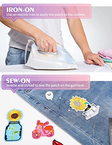 【Facile Da Usare】 C'è della colla sul retro della nostra toppe termoadesivi, che può essere riscaldata e stirata, oppure può essere cucita con aghi e fili. Dopo aver stirato la toppe per vestiti, puoi cucire i bordi della toppe da cucire con un ago per fissare meglio la toppe adesive per tessuti sui vestiti.