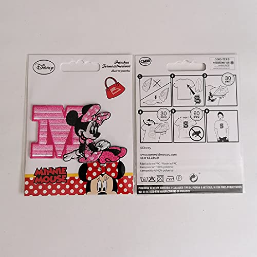 Toppe termoadesive - Minni 'M' Disney - rosa - 8x5cm - Patch Toppa ricamate Applicazioni Ricamata da cucire adesive
