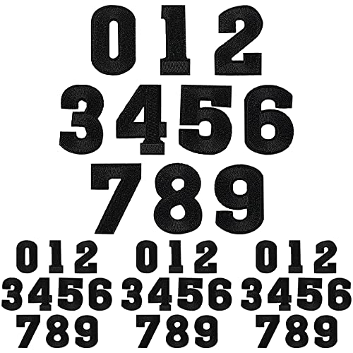 AIEX 4 set Toppe Termoadesive con Numeri, Toppe per Vestiti 0-9 Toppa Ricamata per Applique Toppe Adesive per Tessuti per Giacca Pantaloni Borse Cappello Zaino Camicie (Nero, 2,1x3,2 cm)