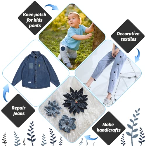 Le toppe termoadesivi in denim è adatta per cuscini, zaini, jeans, vestiti, cappelli, gonne, magliette, ecc. È anche adatto per l'artigianato fai-da-te.