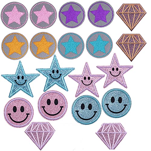 Toppe Termoadesivi, Toppe per Vestiti Pentagramma,Sorridente, Toppe Termoadesivi, 20 Pezzi Stoffa Adesiva Toppa per Vestiti Toppa Ricamata per Giubbotti,Jeans,Zaini,Fai da Te (colore chiaro)