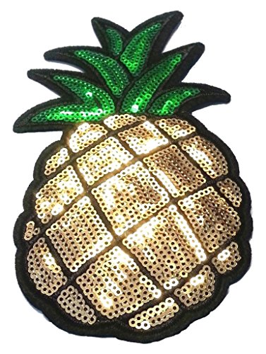 Toppe Toppa grandi termoadesive con paillettes da cucire termoadesive Patch termoadesiva Applique applicazioni con paillettes " ananas 16,5 x 10 cm "