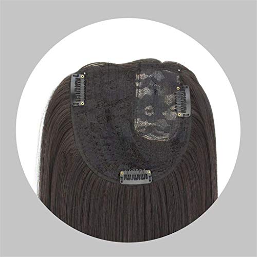 Topper per capelli lunghi 50,8 cm per donne con separazione sinistra, clip in cima per diradamento dei capelli, nero e marrone