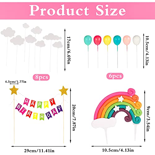 Cake Topper di Compleanno 16 pezzi Arcobaleno Torta Decorazione Cupcake Topper Set Includere Palloncino a Forma Nuvola Stella Happy Birthday Banner per Bambini Decorazione Torte