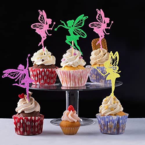 24 topper per cupcake a forma di fiore, fata, decorazione per torte, fate, compleanni, torte, cupcake, topper per feste di compleanno e baby shower