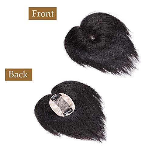 Hair Topper Donna Extension Capelli Veri Clip SILK BASE Remy Human Hair -25cm 20g #1 Jet Nero - Toupet Lisci Invisibile Naturale