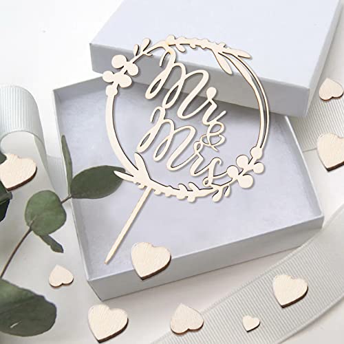 【Materiale】 Sposa Decorazione Torta Legno Realizzate in legno di bosso, decorazioni nuziali in legno composte da "Mr" e "Mrs", la dimensione totale è 20,5 * 19 * 2,5 cm, più una confezione da 100 trucioli di durame. Cake Topper Matrimonio in Legno lisci senza sbavature. Decorazione per torta cake topper Piccoli dettagli raffinati, robusti e riutilizzabili