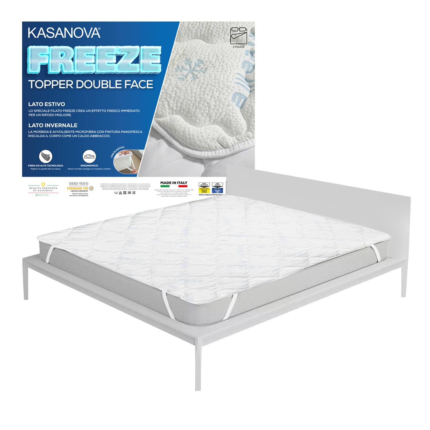 Il topper double face Made in Italy perfetto per dormire al meglio in ogni stagione! Rinnova il tuo materasso: con il topper rigeneri il tuo materasso senza necessità di cambiarlo e riposando in totale comfort;