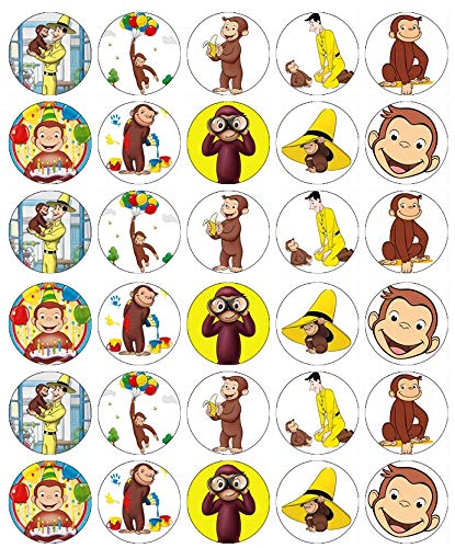 30 topper in ostia, commestibili, a tema Curioso come George, per cupcake e torte di compleanno