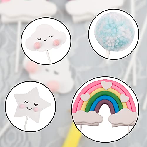 Set di 15 topper per torta, per compleanno, arcobaleno, nuvola, stelle, palloncini e decorazioni per torte per bambini, per compleanni, feste
