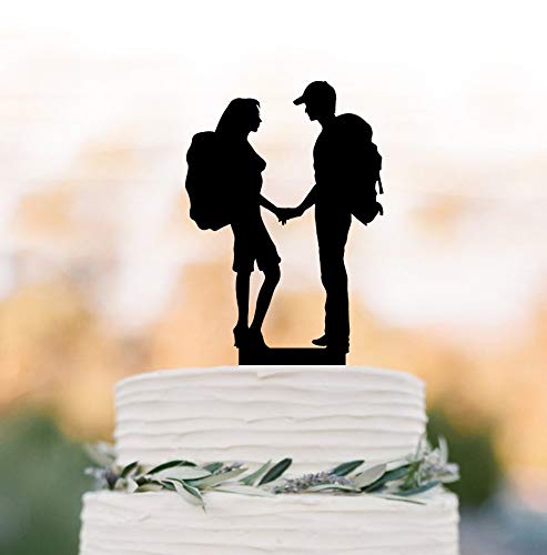 Topper per torta di coppia escursionistica zaino in spalla sposa e sposo all'aperto matrimonio montagna torta nuziale topper